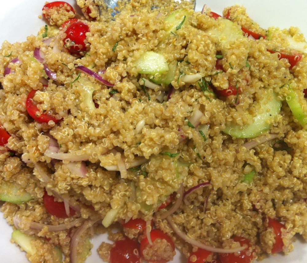 The menu consisted of: Mixed Greens and Herb Salad with Figs and Walnuts, Hanger Steak with Herb Nut Salsa, Summer Quinoa Salad, and Cornmeal Almond Cake with Strawberries and Mascarpone. Everything was delicious – and very straightforward to make! This series was created exclusively for Sur La Table by the editors of FOOD & WINE.