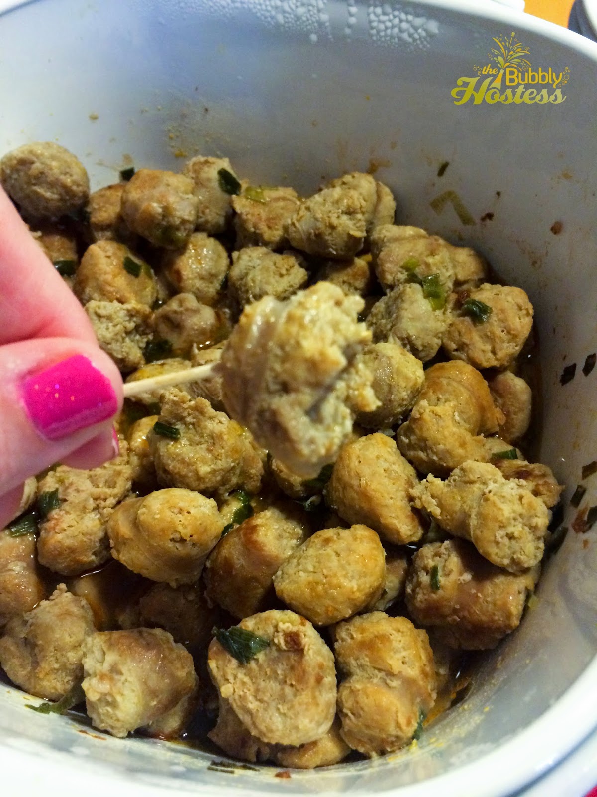 In the crockpot, I served another easy dish using the Original Red Sauce – Sausages in Beer. I modified the recipe some by using just over two pounds of Italian turkey sausage from Jennie-O – one package of sweet and one package of hot. It was great! And – a bit of a surprise as to which one you were actually going to eat when choosing them! 🙂