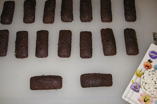 The third and final treat is by far my favorite! Remember those Waffle Dippers I posted in 2012? She used the pan and filled with cake batter to make these super cool mummies! You’ll need the pan, it looks like this:
