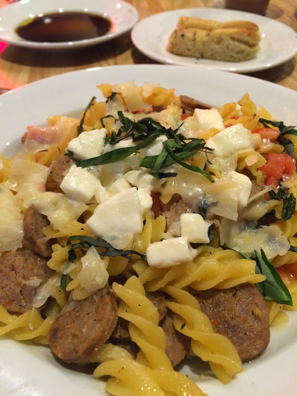 The first time I dined there I ordered the Pasta Puglia – this dish was delicious!  Their menu describes it as Fresh Tomato Brodo, Fresh Mozzarella, Italian Sausage topped with Fresh Basil and Shaved Parmesan – Served on Fusilli.  The key words in this description drew me in immediately!   It was awesome.