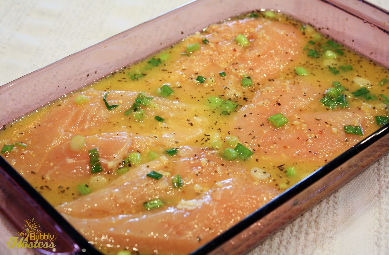 Combine all of the ingredients with a whisk.  Lay chicken breasts flat in a large pan.  Pour marinade into the dish and flip over the chicken to cover both sides.