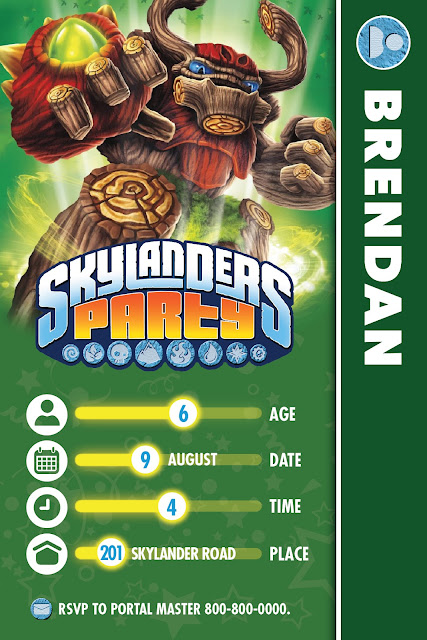 In August, I hosted my son’s 7th birthday party and as you know from following my blog, the theme this year was Skylanders. Unclear on what that means? Skylanders is an interactive game where the figurine of each Skylander comes to life through the Portal of Power and the player can then manipulate that character on the screen through various video game systems (we use the Wii, but it can be played on XBOX, Playstation, etc). It’s pretty cool, actually. You can read all about Skylanders at www.skylanders.com.