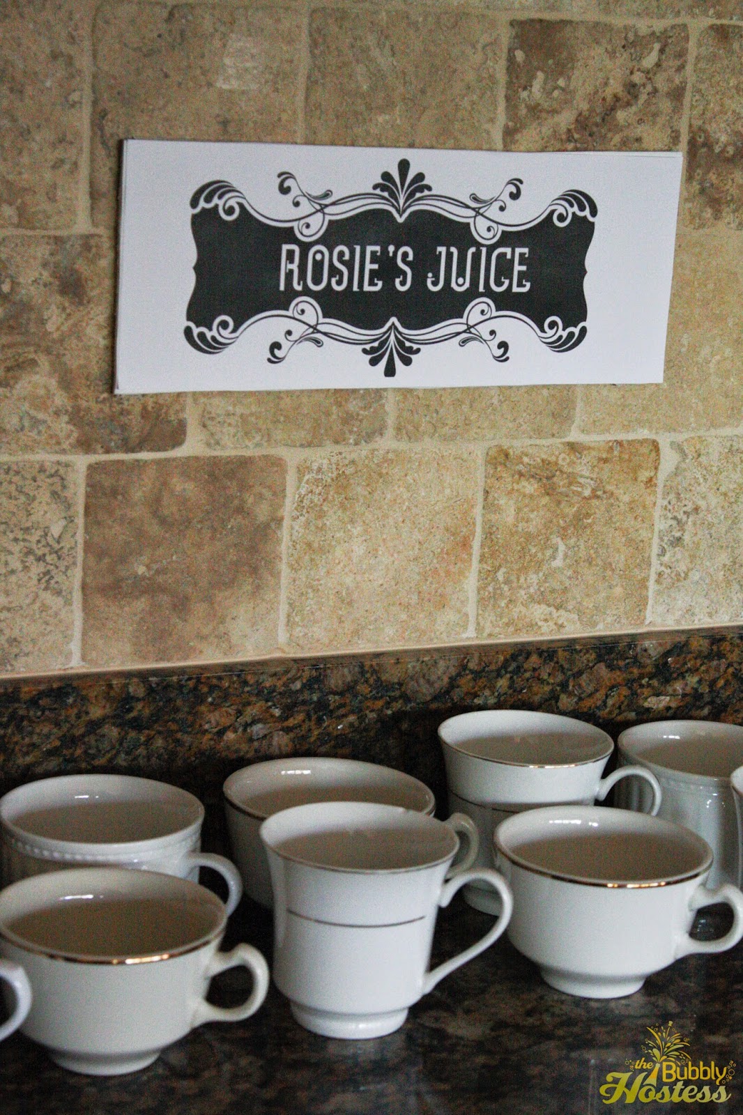 Other decorations we had included empty liquor boxes placed around the house, bottles with liquor labels I printed from the PDF, and other signs for the Juice Joint that I attached to foam board.