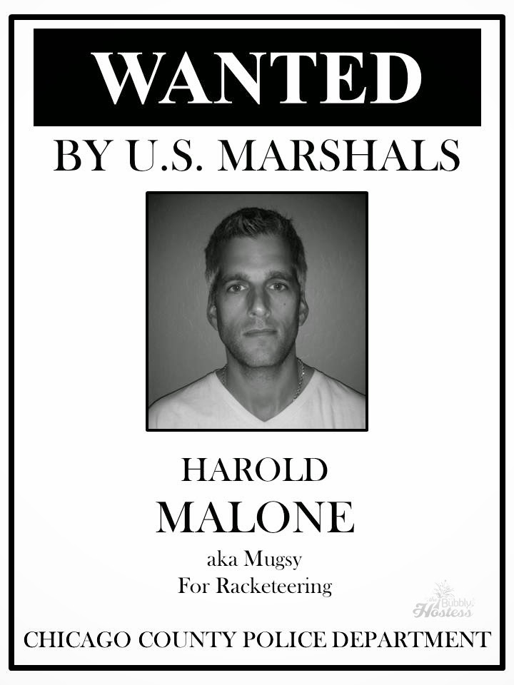 I took the idea from the PDF to create wanted posters for the two mob bosses and one of the key henchmen – but inserted my friends’ photos in them for a more realistic look! (Hint: The Hubby was Southside Sal)