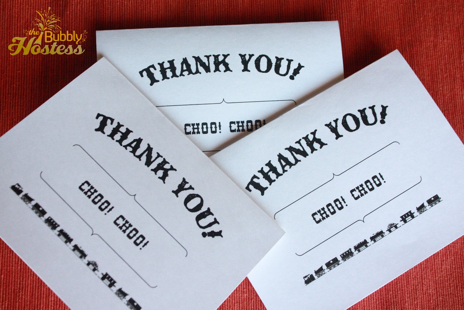 I decided to make these cute thank you notes with the font and design I used to create the train party ticket invitation.
